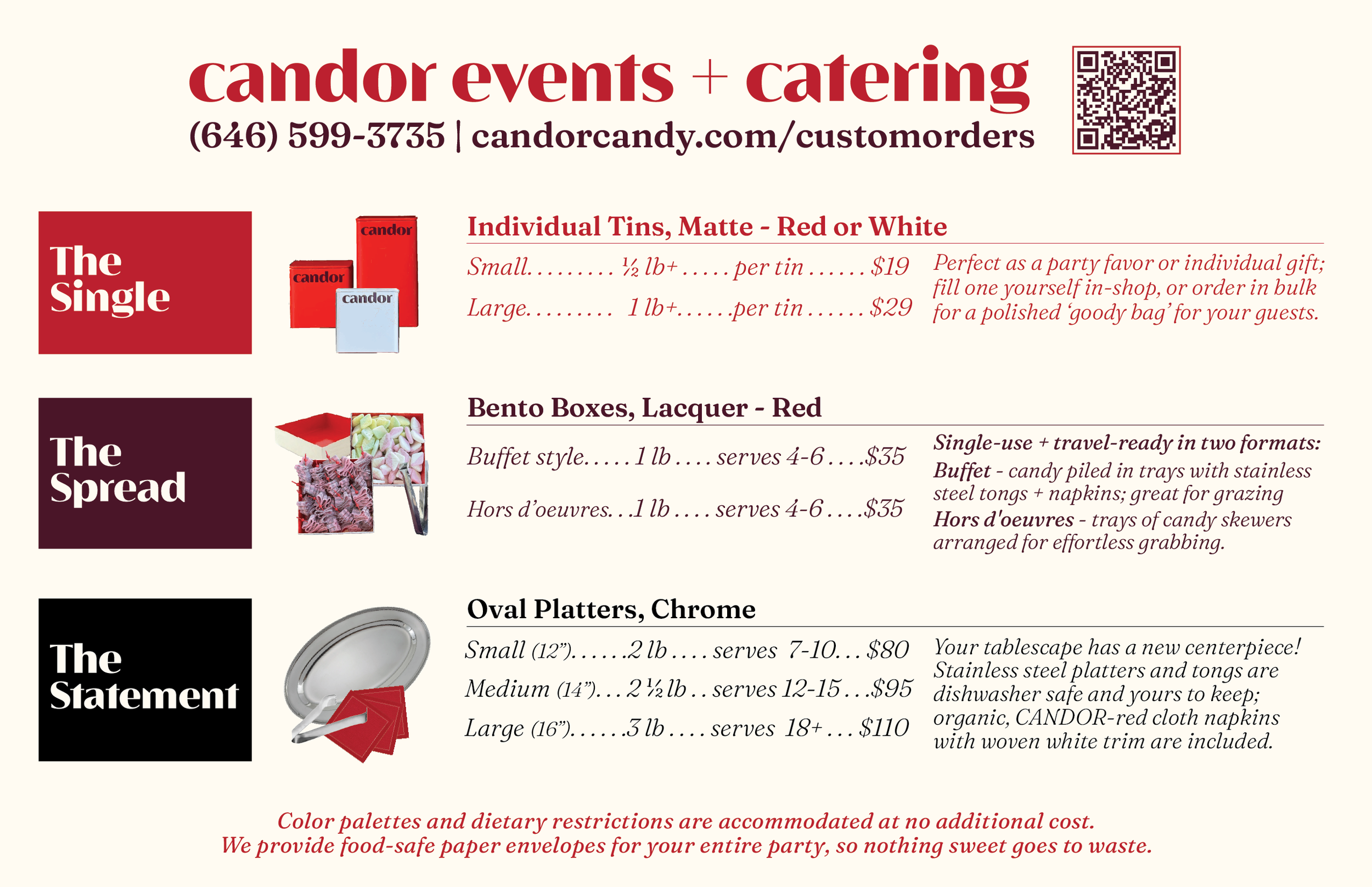 Note: if your heart is set on particular candies or extra packaging details, placing your order at least three weeks ahead gives us the best opportunity to source every element.